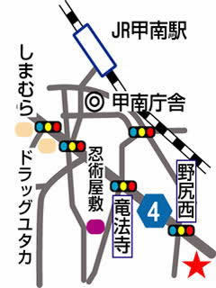 JR甲南駅を道なりに約700m行った所の野田の信号を左折し、約1.5Km行った右側
